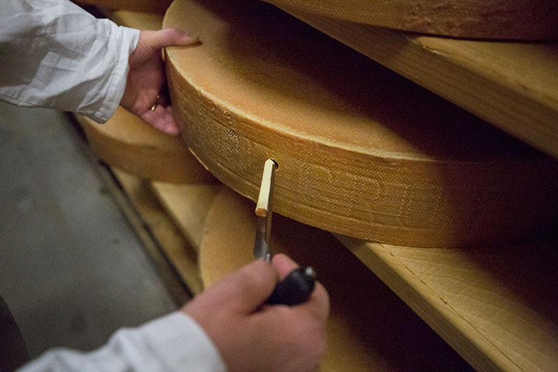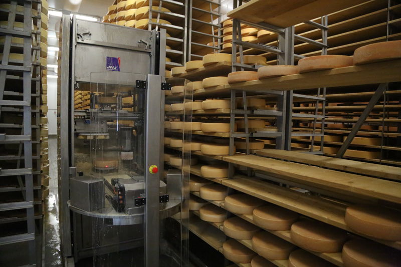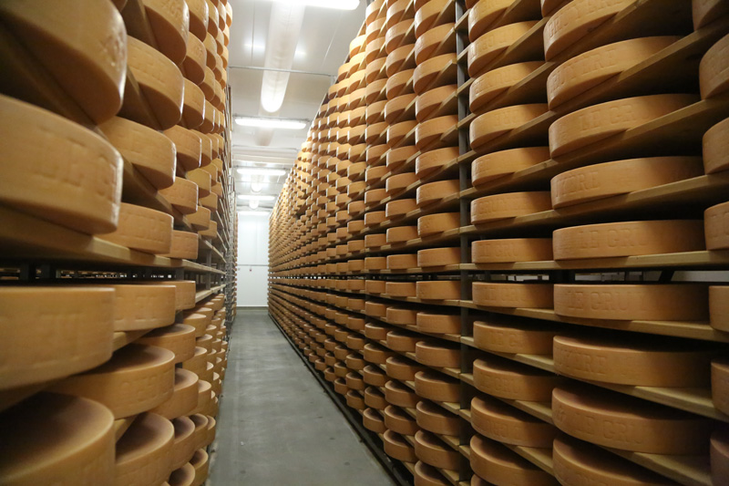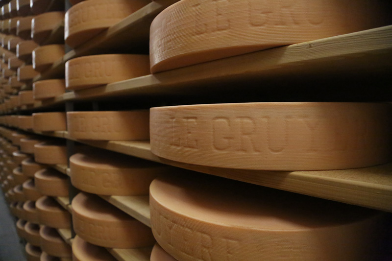 Dieser Käse wird seit 1115 aus Kuh-Rohmilch hergestellt. Er wird weltweit wegen seines typischen, feinen Aromas von Käseliebhabern geschätzt und darf nur in den Kantonen Freiburg, Waadt, Neuenburg, Jura und in gewissen Gebieten des Kantons Bern (u.a. im Berner Jura) produziert werden. Nebst der Produktion ist der Reifungsprozess ein wichtiger Aspekt um einen guten Gruyère AOP herzustellen. Wir produzieren den klassischen. Unser milder, wird zwischen 6 und 7 Monaten gereift. Der reifere Gruyère AOP wird minimal 12 Monate affiniert, hat einen intensiven Charakter und ist besonders aromatisch im Geschmack. Unser Extra Vieux (extra Alter) wird speziell für seine Lagerfähigkeit selektioniert um das respektable Alter von minimal 20 Monaten zu erreichen. Dabei entfaltet er sehr spannende Aromen.